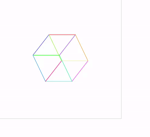 투영: 회전된 3D 좌표에서 Z 값을 버리고 X, Y만 남겨 2D 평면에 투영합니다. (정투영이라서 원근 왜곡 없음)